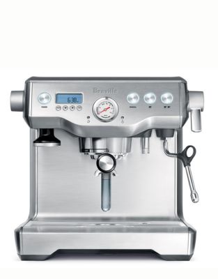 Coffee & Espresso Machines - The Breville Dual Boiler Espresso Machine extracts your shot at the right temperature while simultaneously steaming milk for rich, flavorful cafe-quality every time. From that first morning cup to evening dessert drinks, the stainless-steel espresso and cappuccino machine offers commercial features, push-button performance and countertop convenience. A dual stainless-steel boiler heating system with electronic PID temperature control gives you the precise temperature and pressure from the tank to the cup. The Breville Dual Boiler espresso machine's dedicated espresso boiler adjusts for different bean roasts, while a separate 32-oz. steam boiler delivers instant and continuous steam on demand from cappuccinos and lattes to mochas and much more. An over-pressure valve limits the 15-bar Italian pump during extraction, so no bitter flavors affect your coffee drinks. Programmable low pressure pre-infusion gradually increases for gentle, even extraction and an espresso pressure gauge monitors extraction pressure. Embedded group head element ensures the dual boiler espresso machine maintains a consistent temperature. Adjustable shot temperature gives you optimal espresso flavor. Programmable volume control with preset 1- and 2-cup and manual override. Backlit LCD displays temperature in Fahrenheit or Celsius and a clock with auto start preheats the machine at a programmed time. An espresso shot clock guides extraction consistency. Top-fill 84-oz. water tank is easy to access and a dedicated hot water outlet instantly makes an Americano or tea or preheats cups. Commercial full swivel steam wand with 3-hole tip ensures a silkier texture. Drop down swivel foot lifts the Breville Dual Boiler espresso machine for easy handling. Fill tank alert stops a shot from being pulled without enough water in the tank. Other convenient features include an integrated and removable tamper and 6-cup warming tray. The stainless-steel espresso and cappuccino machine includes a 25-oz. stainless-steel frothing pitcher, single and dual-wall filter baskets and a year's supply of water filters. The sleek stainless-steel dual boiler espresso machine does it job so seamlessly, turning you into a top-notch barista right in your own kitchen. Product Features Breville Dual Boiler espresso machine dedicated espresso boiler is adjustable (190 F-205 F) for different bean roasts and origins Separate dual-bar steam boiler simultaneously froths with instant, continuous steam on demand Innovative Italian-made 15-bar pump with over-pressure valve (OPV) delivers optimum extraction pressure of 9 bars, preventing bitter espresso flavors Professional-grade stainless-steel body is ultra-durable and stylish to fit any kitchen Programmable electronic PID temperature control delivers precise water temperature for optimal espresso flavor Commercial 58mm group head with embedded element ensures thermal stability during extraction Programmable low pressure pre-infusion gradually increases for gentle, even extraction Programmable pre-infusion function oversees pressure duration and power to fine-tune flavor Adjustable shot temperature gives you premium espresso flavor Espresso pressure gauge assists in reaching the optimum extraction pressure Espresso shot clock guides extraction consistency Programmable volume control with preset 1- and 2-cup and no volume Backlit LCD displays temperature in Fahrenheit or Celsius AM/PM clock with auto start preheats the machine at a programmed time Removable 84-oz. (2.5L) water reservoir is easily accessible Easy-to-operate steam lever for instant and continuous steam 360-degree swivel steam wand with 3-hole tip for a silkier texture Dedicated instant hot water swivel wand makes tea, hot cocoa and other warm drink favorites and preheat cups Drop down swivel foot lifts the dual boiler espresso machine for easy handling Fill tank alert stops a shot from being pulled without enough water in the tank. Stainless-steel espresso and cappuccino machine offers 6-cup warming tray Integrated and removable tamper 58mm stainless-steel portafilter with double spout Single-wall and double-wall 1- and 2-cup filter baskets 25 oz. stainless-steel frothing pitcher for added convenience Breville Assist power plug with finger hole design for easy and safe removal from the outlet All parts that come into contact with coffee and water are BPA-free Includes water filter holder and a year's supply of water filters Dual boiler espresso machine stores the filter basket and cleaning tools Wipe clean 1-year limited warranty Includes: 25-oz. stainless-steel frothing pitcher dual-wall 58mm stainless-steel filter baskets (1- and 2-cup) single-wall 58mm stainless-steel filter baskets (1- and 2-cup) removable tamping tool cleaning tool cleaning disc and tablets Allen key water filter holder and water filters easy-use guide and English/French instruction booklet with coffee preparation tips - Specifications Model: BES900XL Designed and engineered in Australia; made in China Material: stainless-steel, thermoplastics Capacity: 84 oz. Watts: 1,700 Size: 15"W x 16 1/4"D x 15"H Weight: 37 lb. 8 oz. Use and Care Do not immerse the Breville Dual Boiler espresso machine in water or place any of its parts or accessories in the dishwasher. Wipe the outer housing and cup warming tray with clean with a soft, damp cloth and wash components by hand. Never use abrasive cleaners or objects to the clean the machine. Polish the machine with a soft, dry cloth. Before first use, wash all parts and accessories in mild detergent and water. Rinse and dry thoroughly. The drip tray should be removed, emptied and cleaned after each use or when the drip tray indicator is showing Empty Me! Remove grill from the drip tray. Wash both in warm soapy water. The Empty Me! indicator can also be removed from the drip tray. The storage tray can be removed and cleaned with a soft, damp cloth. Periodically purge the dual boiler espresso machine with hot w