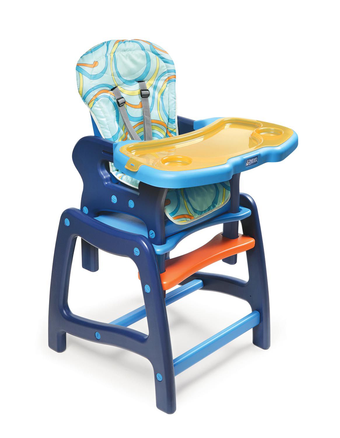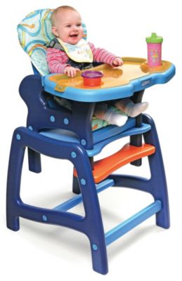 Badgers Envee highchair easily converts back and forth from a fully-featured baby feeding station to a separate play table and chair for your toddler and preschooler. The Envees many convenient features are easy to use yet its also affordable. Includes a three-position adjustable front tray and three-position reclining adjustable seat. Seat can be reclined using one hand. Seat includes a five-point harness system with one-handed quick release buckle. Simply press the large button in the center of the harness and both shoulder and waist belts release. Two trays included! The regular tray has a removable dishwasher-safe insert tray so its easy to tidy-up and always have a clean surface available for each meal. Insert tray snaps off easily by releasing and pulling up on the two side clips. Removable tray includes two indented cup holders and a indented large main compartment (3/4 inch deep). Main tray features one spacious indented compartment (5/8 inch deep). Removable washable seat pad. Seat pad is 100% polyester fabric with polyester foam padding. Pad can be machine washed in cold water gentle cycle do not bleach do not iron air dry; may be dry cleaned if desired. Chair includes a footrest that is especially comfortable when used with the table. Chair with Tray (and without tray too) can be used separately from the base/table. For use from approximately six months (when your child can sit unassisted) and up in the highchair. For use from approximately 2 years to approximately 6 years (40 pounds/18 kg) when converted to a playtable and chair (maximum ages vary depending on the childs size/weight and activity level). Overall Highchair with Tray measures 24.5 inches W (23.5 inches W when insert tray is removed) x 28 inches D x 40.5 inches H and weighs 19 pounds. Overall Highchair without Tray measures 19.75 inches W x 24 inches D x 40.5 inches H. When Highchair seat is fully reclined it adds another 4 inches to the Depth. Chair without Tray measures 14.75 inches W x 17.25 inches D x 28 inches H and weighs 9 pounds. Chair with Tray measures 24.5 inches W (23.5 inches W when insert tray is removed) x 25 inches D x 28 inches H. When Chair seat is fully reclined it adds another 6.75 inches to the Depth. Interior width of the chair is 12.25 inches W. Height from top of seat to floor in High Chair position is 28.5 inches and it is 12.5 inches from seat to floor in play chair position. Table measures 19.75 inches W x 24 inches D x 21.75 inches H (20 inches H to the tabletop surface) and weighs 8 pounds. Table surface area measures 16.75 inches W x 17.5 inches D. Step bar on base/table makes it easy to hold the chair steady when adjusting the tray or removing/inserting the chair. Chair/Table are made of durable recyclable High-Density Polyethylene (HDPE) plastic; feeding tray is made of recyclable Polypropylene (PP) with Nylon. Easily wipes clean with a sponge or damp cloth and mild soap. Complies with all current U.S. and European safety standards including T-bar on the tray to prevent sliding out. Chair slots into table only one way for extra safety when converting to highchair use. As a play table the chair nests slightly under the table for comfort during craft or meal time and compactness when not in use. Adult assembly required. Illustrated assembly instructions included. Custom-designed assembly tool included. All measurements are approximate. Product details/features subject to change at any time without notice. Props/accessories shown with the chair are for illustration purposes only and not included. No polycarbonate plastic is used in the manufacture of this chair therefore the chair is BPA free.