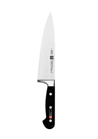 Chef's Knives - Sturdy, heavy knife with broad, strong blade and fine cutting edge. The all-around for professionals and hobby chefs cleans vegetables, minces herbs and chops anything. Also known as the cook's knife, it's the workhorse of all kitchen knives. Knife handle is rocked up and down with one hand while the fingers of the other hand rests lightly on the back of the blade. Designed for professional chefs with a forged blade of high-carbon stainless steel that resists stains, rust and corrosion. Zwilling JA Henckels products, hand-crafted since 1731, set the world standard for appeal, function and style. The trustworthy quality and tradition of these riveted knives is easily visible by the full tang and the full length of solid steel. Classical styling and state-of-the-art technology in blade manufacturing combine to form the TWIN Pro-S Series. Product Features SIGMAFORGE one piece construction gives perfect geometry, high precision and improved stability of the blade and steel structure as well as improved cutting edge retention Laser controlled edge is sharper and stays sharper longer. Has a more consistent blade angle Friodur ice hardening offers maximum no-stain properties and more blade strength along with improved resistance to corrosion and pitting Super bolster provides weight, insures safety and adds balance Fully visible tang construction gives proper balance and great strength High carbon no-stain steel ensures no staining or rusting Hand honed for a long lasting edge Precision honed is sharper and stays sharper longer Triple riveted Novodur handles offer a durable, strong, smooth, comfortable handle that is perfectly balance BONUS: Zwilling JA Henckels Cookbook & CD included Full warranty Made in Solingen, Germany - 6" Blade Model: 31021-163 Total length: 11 3/4" Weight: 8 ounces 8" Blade Model: 31021-203 Total length: 13 1/4" Weight: 9 1/8 ounces 10" Blade Model: 31021-263 Total length: 15 5/8" Weight: 9 7/8 ounces Care Instructions No metal is completely "stainless". Do not allow acidic foods (lemon, mustard, ketchup, etc.) to remain on the blade after use. This might cause some slight tarnishing. Should the blade show some signs of staining, use a non-abrasive metal polish for cleaning. Do not put knives in the dishwasher. Banging against other cutlery or pots and pans will nick the edge. Also, high heat and detergent are not good for the handle. Wipe the knife clean with a wet cloth and dish washing detergent. Dry immediately. Dry from the back of the knife to the edge. Do not cut through bone with knives (except cleavers). Do not use knives for poking, prying, separating or cutting semi-frozen or frozen foods. Do not abuse knives as screwdrivers or can openers. This not their designed purpose and may result in bending or breaking the blade or edge of the knife. Zwilling JA Henckels warranty does not cover misuse.