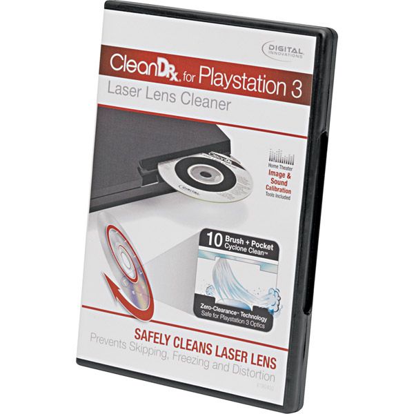 cleaner is specifically design to safely clean ps3 game systems10-brush plus pocket cylcone clean process includes 10 flexible brushes strategically placed in a cyclone formation for optimal cleaningits unique zero-clearance technology allows each brush to retract into a pocket to prevent knocking the delicate optical lens out of alignmentpatent-pending system is especially important for blu-ray players because the optics can be as close as 0. 004" away from the disc. Type: Cleaner Features: CleanDr for Playstation Laser Lens Cleaner is specifically designed to safely clean Playstation laser lenses. The Zero-Clearance10-Brush Cyclone Clean process removes dirt and dust build-up on the lens of the console that causes audio and video dropout and distortion. Cleaning the laser lens helps maintain the life of the Playstation, as well as improves image and sound playback Exclusive 10-brush Cyclone Clean Process, featuring Zero Clearance Technology, removes dust, dirt, and debris Exclusive, Zero-Clearance Technology uses a brush-and-pocket system to allow each cleaning brush to flex into a pocket without knocking the laser lens out of alignment Includes essential Home Theater Calibration tools to help maintain ideal audio and visual playback settings, with on-screen and voice instructions available in English, French, G.